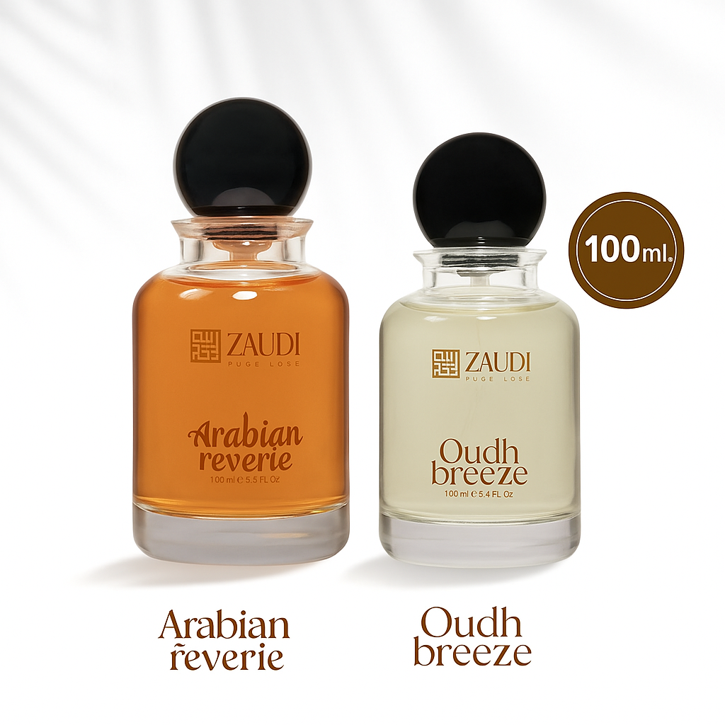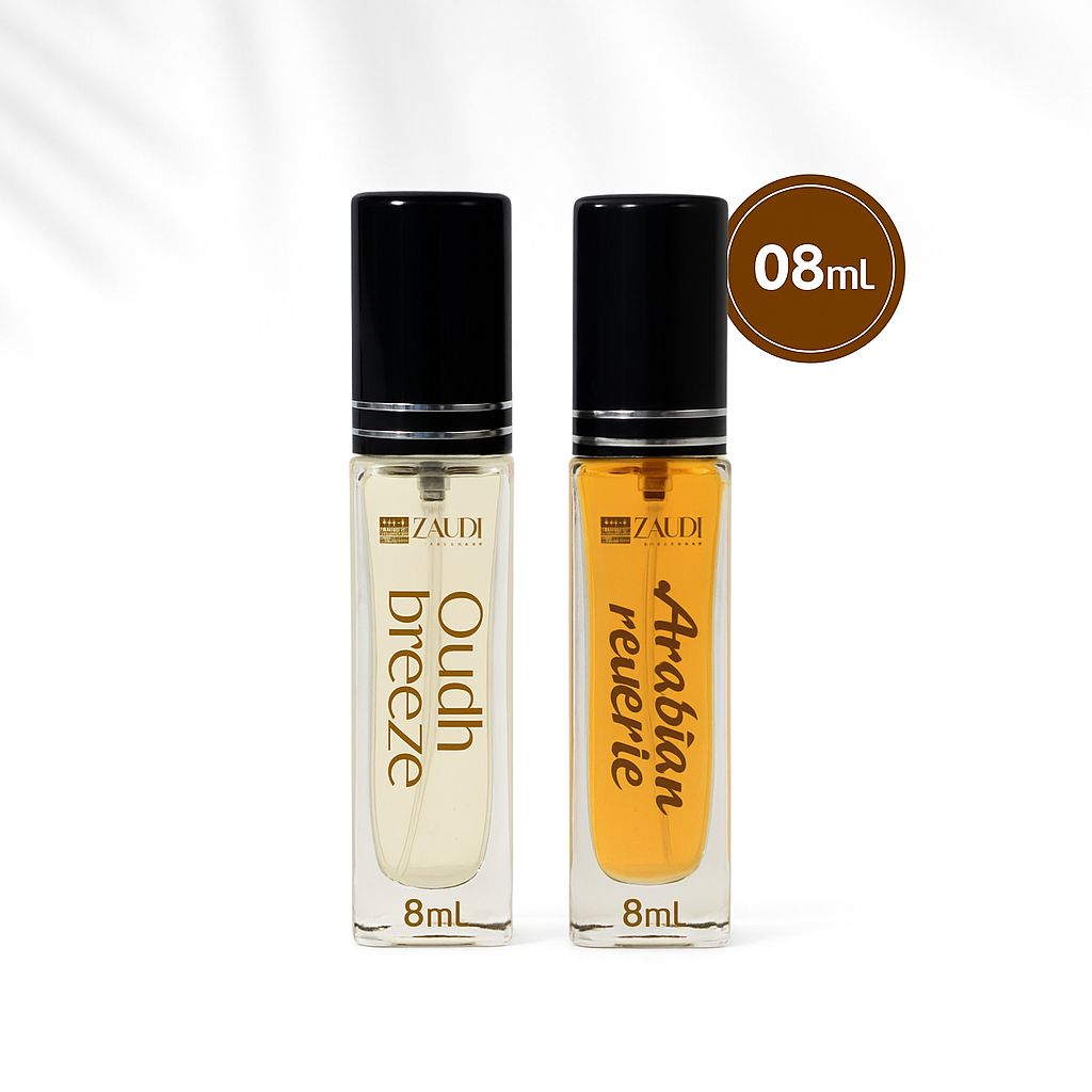 Choose your perfect pair of luxury perfumes – Arabian Reverie, OudhRose, OudhBreeze, or Mantric.